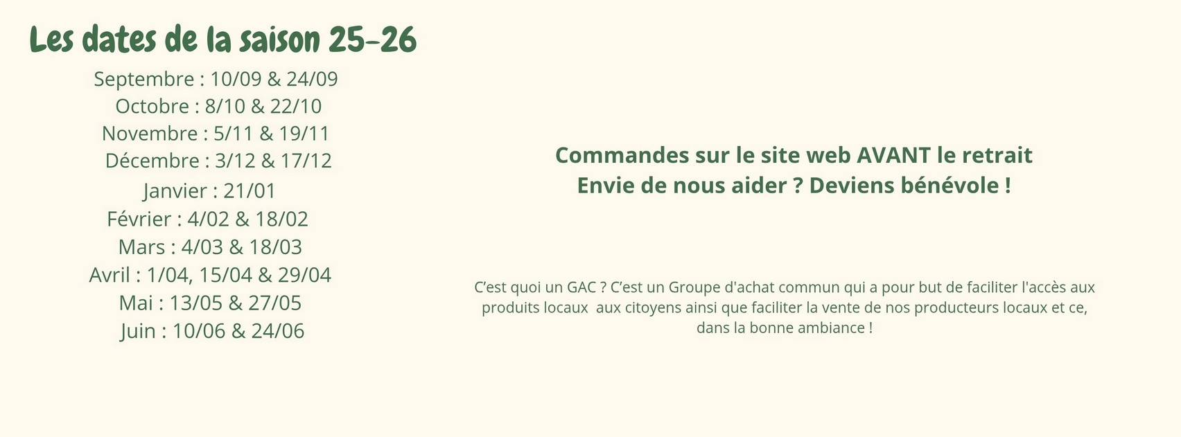1 semaine avant le GAC: Tu reçois un mail qui t'invite à venir commander sur le site du GAC. Tu prends ce que tu veux, aux quantités proposées, clôture le dimanche soir.